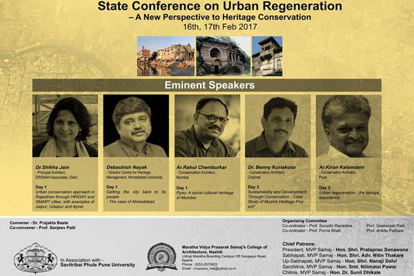 Centre for Contemporary Urbanism is happy to announce its participation in the State level conference on Urban Regeneration- A new perspective to Heritage Conservation, which was held on 16th - 17th February, 2017, organized by MVP College of Architecture and Centre for Design, CANS, Nashik in association with Savitribhai Phule Pune University.