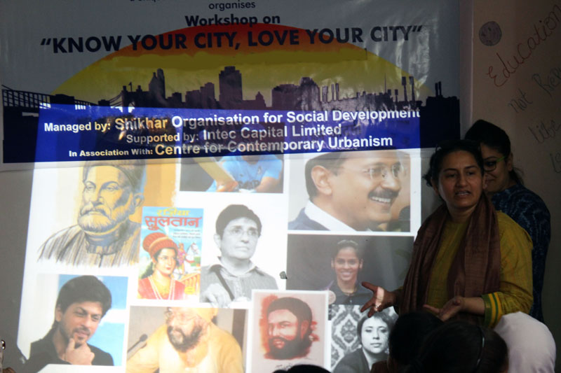 Centre for Contemporary Urbanism recently organized an interactive workshop with 40 students of Shikhar Girls’ School in Okhla (mainly in the age group of 13-15 years, with a few older ones, who are now moms, and have taken the brave step to resume their education). This workshop, titled ‘KNOW YOUR CITY to LOVE YOUR CITY’, was the first among many planned by CCU to take forward its objective to enhance people’s knowledge about their cities and neighbourhoods.